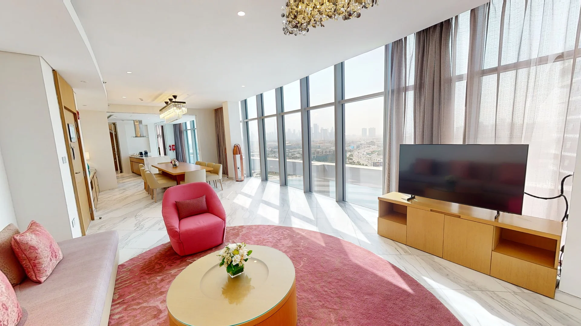 The Hilton Dubai Creek Hotel & Residences offers a harmonious blend of modern luxury and cultural heritage. This newly constructed tower features 180 fully serviced units, including studio, one-, and two-bedroom apartments, as well as three-bedroom duplex penthouses. Each residence is thoughtfully designed with floor-to-ceiling windows, providing panoramic views of both the historic and contemporary facets of Dubai's skyline. Fully equipped kitchens and spacious living areas ensure that guests experience the utmost comfort during their stay.
